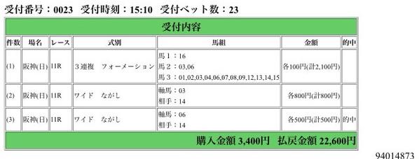 ②ルール:1レース複勝100円を購入し、全23レースで2,300円を投入した結果一番払戻しした方が優勝