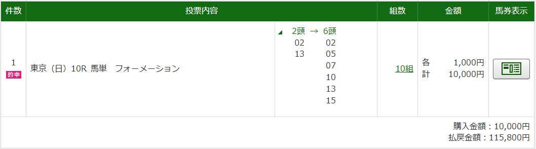 ⇒115,800円的中