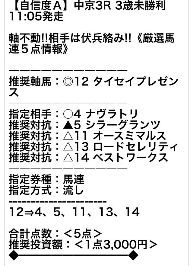 馬連自信度Aのこんな感じの5点勝負が強いです